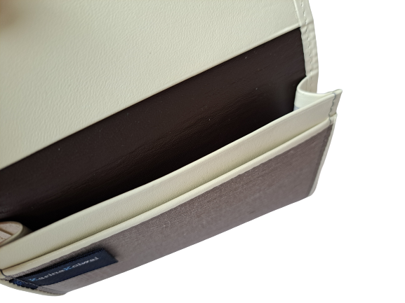 ・手織り上田紬の生地に、白い牛革でシャープな印象にカットした名刺入れです。
