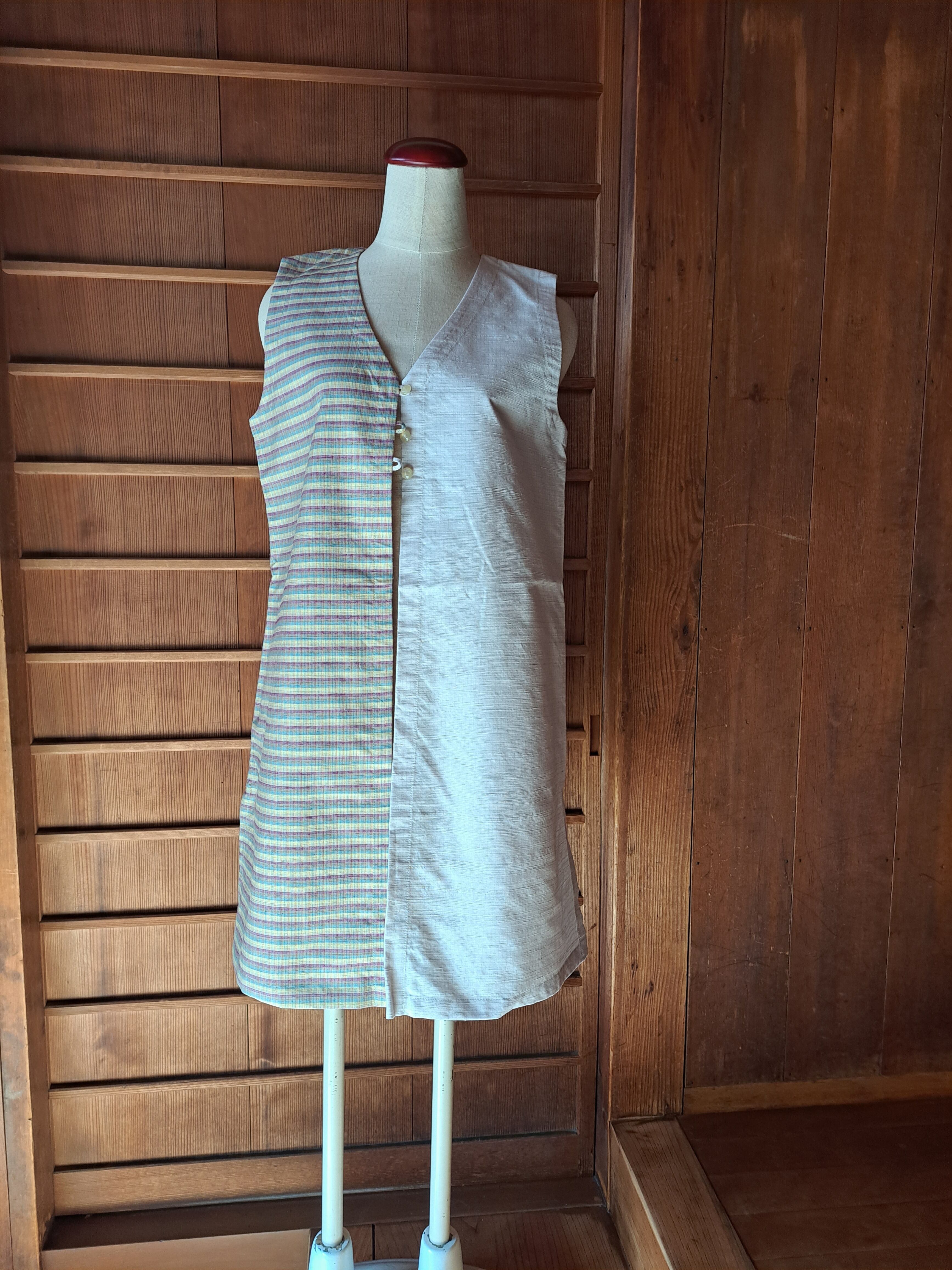 切り替えがかわいいデザインのつむぎベストです。